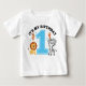 Haz que el primer cumpleaños de tu pequeño sea algo muy especial con esta adorable camiseta de cumpleaños número 1. Con un gran número azul "1" rodeado de adorables animales de la selva de dibujos animados - un mono juguetón, un león sonriente, una jirafa alegre, un elefante amigable y una cebra feliz - esta camiseta está diseñada para traer alegría y diversión a la celebración. El texto "ES MI CUMPLEAÑOS" añade un toque festivo, mientras que las estrellas coloridas, globos y confeti crean un ambiente de fiesta. Perfecta para fotos de pastel, fiestas de cumpleaños o como recuerdo memorable para el día especial de tu bebé. Suave, cómoda y llamativa - el outfit perfecto de cumpleaños para tu pequeño que cumple UNO.