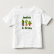 Camiseta de cumpleaños con un ilustracion caprichoso con 3 pequeños cactus felices sentados en sus propias macetas de flores. Cada uno tiene sus propias expresiones únicas sonriendo y luciendo feliz.