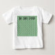 Esta camiseta para bebés tiene un diseño art deco de círculos azules y púrpura que se conectan con líneas en un campo de verde claro.