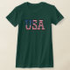 Una camiseta de camuflaje patriota de la bandera estadounidense camo, perfecta para el Día de la Conmemoración, el 4 de julio, o cualquier otro día que quieras mostrar tu orgullo por el país más grande del mundo. ¡Las estrellas y las rayas de la bandera norteamericana orgullosamente deletrean a Estados Unidos!