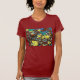 Esta tierna camiseta de Carnación con rojo oscuro usa el Efecto soñador en una foto original tomada de flores de clavel rojo, amarillo y naranja en los Jardines Ted Ensley.