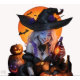 Una bruja con cerveza que se hace con hechizo. Diseño gráfico con tipografía. Negro y naranja como diseño de halloween.