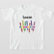 Esta es una camiseta divertida para un chica que va a la guardería. A tu pequeña niña simplemente le encantará usar esta colorida camiseta en su primer día de kindergarten. Para hacer la camiseta aún más especial, puede ser personalizada con el nombre de su chica en la parte delantera. El diseño consta de siete lápices de colores en diferentes ángulos, uno al lado del otro, y la palabra "jardín de infancia" con cada letra en diferentes colores, a través del medio de los lápices.