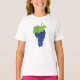 Parece realmente fresco y saludable el diseño de un montón de uvas. Se ven muy agradables y su color es un maravilloso morado. Este grupo de uvas está colgando muy bien con un follaje verde en la parte superior. Este grupo de diseño de uvas se ve genial en esta camiseta de chicas. Perfecto para usted o como regalo