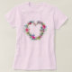 Esta camiseta rosada tiene una corona floral en el corazón en el frente. Bonito De rosa.