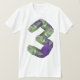 Un tipo de letra realmente interesante es en lo que se hace este número tres. El número 3 es grande y con una cara de tipo cristal. Está pintada de color verde y violeta. Este diseño de fuente cristalina número 3 se ve genial en esta camiseta masculina. Perfecto para usted o como regalo