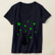 Personalizado de silueta de un gato negro con ojos verdes. Una estrella verde cuelga de la cola del gato. Un cielo estrellado de estrellas a juego está en la parte delantera y trasera.