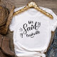 Diseño moderno y lindo para la fiesta de bodas o para un escape de despedida de soltera. Las palabras en espiral "Nosotros dijimos Nashville" en una camiseta blanca, tiene un corazón y seguro llamará la atención. Destino de la fiesta de despedida de soltera... Nashville. Se puede usar para la cena de ensayo y junto con tu fiesta de bodas.