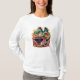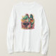 Un creativo ilustracion de camisetas con un juguetón dragón antropomórfico corriendo un puesto de parrilla barbacoa. El dragón, con una sonrisa maliciosa, lleva puesto un gorra de chef y sostiene un par de tintas. La parrilla está en llamas con pequeñas llamas, y está rodeada de comida vertiginosa, que incluye salchichas y hamburguesas. El fondo es un paisaje urbano estilizado, con edificios y un puente a lo lejos. El diseño general es vibrante y lleno de energía, lo que hace que sea divertido y llamativo. ilustracion