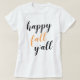 Camiseta de escritura Feliz Otoño a Todos. Estarás muy lindo y listo para el Otoño. La cita estacional está en una bonita escritura negra y naranja y dice "feliz otoño a todos".