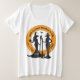 Crea una franja para la marcha de brujas de tu pueblo u otro evento de recaudación de fondos de Halloween. Creado con dos elegantes brujas modernas con escobas sobre un fondo circular de estilo logo con texto editable. Numerosos estilos y tamaños de camisetas. Negro y naranja, se ve mejor en colores claros. Vea también un diseño blanco sobre colores oscuros.