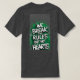 El color es muy bonito al natural, como la foto. El tejido es suave y de buena calidad. Sin defectos en el tintado, ni hilos sueltos o descosidos. Bien la impresión. Los bordes de las letras y el dibujo son nítidos, y el color contrasta muy bien con el de la camiseta.