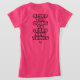 Frase de motivación en los lados frontal y posterior de las camisetas con una cita: "Nunca demasiado joven para aprender cosas nuevas". La imagen trasera es personalizable.