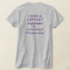 La conciencia del Día Internacional de la Mujer usa una cinta morada para crear conciencia sobre su causa. El arte de la camisa muestra una pintura de ángel de cinta de conciencia púrpura. El mensaje principal de la camiseta del ángel de la conciencia dice "Believe HOPE International Women's Day". En la parte trasera de la camiseta aparece el mensaje de la causa "Espero y apoyo a la toma de conciencia por el Día Internacional de la Mujer". La ropa de arte de la cinta de ángel de la conciencia púrpura se puede personalizar con mensajes personalizados para hacer ropa de evento de gran causa para camisetas de recaudación de fondos, camisetas de caminatas del equipo de grupo, regalos de camisetas de conciencia u otros eventos de causa especial para la mercadería, para ayudar a aumentar la conciencia pública de esta causa por la ayuda de la sociedad en crear ayuda y causar cambio.