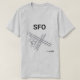 Camiseta que muestra la disposición del aeropuerto de las pistas, de las pistas de rodaje, y de los terminales de la SFO.