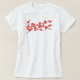 Flores de cerezo rojas y anaranjadas en una camiseta de las mujeres blancas.