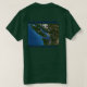 Una frontera corre a través de ella… Camiseta por satélite del mapa del área del metro de la isla de las orcas en algodón del Forest Green. El frente representa la vista por satélite de la isla. La parte posterior muestra a "orcas área del metro" con topónimos de WA del noroeste y del sudoeste A.C.