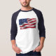Camiseta de manga larga y blanca de algodón para llevar con orgullo americano. La bandera está ondeando con sus estrellas y rayas en el viento. Para vivir en. Disponible en estilos y colores diferentes. También disponible en camisetas para mujeres.