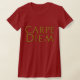 Camiseta de la mujer con el lema latino "Carpe Diem" en letras de oro