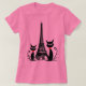 Camiseta larga de la manga de la torre Eiffel y de los gatos negros.