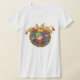Este diseño es una corona de navidades. La corona tiene un elfo en el centro y decoraciones en el exterior. Este diseño de la corona de navidades se ve genial en esta camiseta de Womens