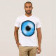 Realmente se tiene la sensación con este globo ocular azul de que te mira directamente. Este diseño de ojos azules es una bonita sombra de azul y tiene un alumno negro profundo. Este diseño de ojos azules se ve genial en esta camiseta masculina. Perfecto para usted o como regalo
