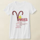 Esta camiseta del aries hace un regalo de cumpleaños perfecto para cualquier aries. El aries es la primera muestra del zodiaco e incluye a todos los individuos nacidos a partir del 21 de marzo - 19 de abril. El símbolo del aries es el espolón. Los rasgos de la personalidad del aries son aventureros, intrépidos, confiados, optimistas e impacientes. El aries Birthstone es el diamante y el planeta del acto del aries es Marte