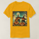 Camiseta con luz de luna de calabazas Esta es una camiseta del espantoso equipo de calabaza. El diseño fue creado con arte generativo. La obra cuenta con calabazas sonrientes vestidas con trajes de bruja o fantasma a la luz de la luna. La camiseta está hecha de 100% algodón, es unisex y se viste bien con cualquiera.