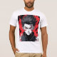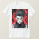 Camiseta de guerrero de anime oscuro con aura de energía crimson y arte de llama audaz. Una camiseta única de inspiración japonesa para los aficionados al anime y los amantes de la calle urbana.