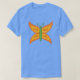 El color es muy bonito al natural, como la foto. El tejido es suave y de buena calidad. Sin defectos en el tintado, ni hilos sueltos o descosidos. Bien la impresión. Los bordes de las letras y el dibujo son nítidos, y el color contrasta muy bien con el de la camiseta.