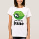 Pequeña y tímida tortuga para que la madre esté con el lema de la invitación del embarazo en junio. Tortuga personalizado colorida con el lema June Baby.