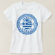 Camiseta de mujer de Andros, Grecia con la bandera nacional de Grecia dentro de un círculo de patrón griego antiguo. Disfruta llevando esta camiseta mientras estás de vacaciones en la hermosa isla de Andros o regálala como recuerdo.