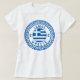 Camiseta de mujer de Samos, Grecia con la bandera nacional de Grecia dentro de un círculo de patrón griego antiguo. Disfruta llevando esta camiseta mientras estás de vacaciones en la hermosa isla de Samos o regálala como un recuerdo.