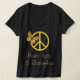 La camiseta de mujer presenta un gran símbolo de la paz amarillo que es reconocido en todo el mundo, con superposición de mariposa amarilla en fondo negro. El texto "Paz amor & mariposas" es personalizable
