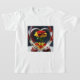 La camiseta en sí, bastante bien. Un poco grande, pero supongo que en dos lavados entallará mejor. Aquí tengo el mismo problema que antes, que el dibujo ocupa toda la camiseta, y por internet me había imaginado que era más pequeño.