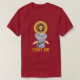 El color es muy bonito al natural, como la foto. El tejido es suave y de buena calidad. Sin defectos en el tintado, ni hilos sueltos o descosidos. Bien la impresión. Los bordes de las letras y el dibujo son nítidos, y el color contrasta muy bien con el de la camiseta.