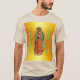Camiseta de Nuestra Señora de Guadalupe... Nuestra Señora de Guadalupe... En diciembre de 1531, la Virgen María apareció sobre una colina a un azteca pidiéndole que le construyera allí una capilla. Llevaba una prenda de vestir de color rosa con diseños de plantas para su asociación Worldly y una bata azul turquesa con estrellas de oro para su asociación celestial. Cuando el arzobispo español exigió pruebas de un milagro, le entregó rosas españoles que el azteca llevó al arzobispo español con su manto o tilma... cuando los rosas se derramaron al suelo apareció la imagen de la Virgen María sobre la tilma de la capa. Esta imagen aún existe sobre el altar de la capilla construida sobre la colina en la Ciudad de México. Esta imagen es una de las más populares de las imágenes devocionales en el mundo, hoy.
