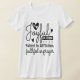 Esta camiseta edificante presenta el mandato: "Alegraos en la esperanza, sufrid con paciencia en la aflicción, sed fieles en la oración". Las fuentes contrastantes, particularmente la escritura grande para "Alegre", enfatizan la resistencia cristiana y la devoción espiritual.