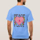 El color es muy bonito al natural, como la foto. El tejido es suave y de buena calidad. Sin defectos en el tintado, ni hilos sueltos o descosidos. Bien la impresión. Los bordes de las letras y el dibujo son nítidos, y el color contrasta muy bien con el de la camiseta.