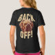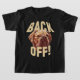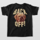 El color es muy bonito al natural, como la foto. El tejido es suave y de buena calidad. Sin defectos en el tintado, ni hilos sueltos o descosidos. Bien la impresión. Los bordes de las letras y el dibujo son nítidos, y el color contrasta muy bien con el de la camiseta.