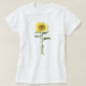 Nuestra Señora de la Caridad, un girasol con cuentas verdes de rosario, nos bendice en español.