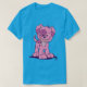 El color es muy bonito al natural, como la foto. El tejido es suave y de buena calidad. Sin defectos en el tintado, ni hilos sueltos o descosidos. Bien la impresión. Los bordes de las letras y el dibujo son nítidos, y el color contrasta muy bien con el de la camiseta.