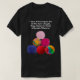 El color es muy bonito al natural, como la foto. El tejido es suave y de buena calidad. Sin defectos en el tintado, ni hilos sueltos o descosidos. Bien la impresión. Los bordes de las letras y el dibujo son nítidos, y el color contrasta muy bien con el de la camiseta.