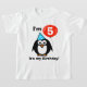 Camiseta de quinto cumpleaños para un niño de cinco años. Divertido personalizado de pingüino con globo rojo y gorra fiesta. Número de edad y texto personalizado, es decir, ¡es mi cumpleaños! Diseño de celebración divertida para la quinta fiesta de cumpleaños de los niños. Ropa infantil.