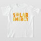 El diseño de la energía solar divertida tiene el lema de la energía solar y solar en amarillo y naranja.