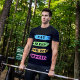 El color es muy bonito al natural, como la foto. El tejido es suave y de buena calidad. Sin defectos en el tintado, ni hilos sueltos o descosidos. Bien la impresión. Los bordes de las letras y el dibujo son nítidos, y el color contrasta muy bien con el de la camiseta.