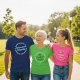 Crea tu propia caja de personalizados para camisetas de voluntariado con el nombre o logotipo de tu grupo. En la parte de atrás, hemos tomado las letras de la palabra "caja de zapatos" y las hemos usado para explicar el asombroso impacto que un simple regalo de caja de zapatos puede tener en la vida de un niño.