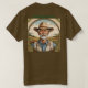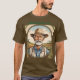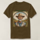 Camiseta de agricultor fuera de servicio Esta es una camiseta de carrera de granjeros. El diseño del granjero fue creado con arte generativo. La obra de arte incluye un granjero en overoles, una camisa y un gorra con una granja. Nubes, plantas y hojas enmarcan la imagen. Off Duty Farmer está en la imagen en texto verde. Puede cambiar el texto con el botón Personalizar. La camiseta es una camiseta básica oscura de color marrón.