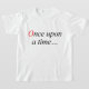 Una camiseta con el tradicional comienzo de muchas historias y cuentos de hadas "Érase una vez..." escrita en un bonito estilo de libro de cuentos con letras cuidadosamente espaciadas y una primera carta roja. La solapa también ha sido ligeramente asfixiada para darle una calidad impresa en papel como si se hubiera eliminado de un libro.