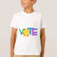 ¡Vamos a rodar! ¡GOTV ustedes! Camiseta con salpicaduras de color con la obra de un artista joven, para "votantes en formación" para ayudar a los votantes adultos a votar.